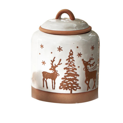 Dolce, anzi dolcissima: Pandizenzero la collezione Brandani che sa di tenerezza, affetto e tepore casalingo. Renne, slitte, boschi e casette di marzapane ci lasciano viaggiare con la fantasia accogliendo il pasciuto Babbo Natale direttamente a casa nostra! Il barattolo renna in resistente stoneware perfetto per contenere dolcetti, squisitezze e altri accessori: teneri Decori e pacate tonalità... come miglior benvenuto alle festività! Dimensioni CM: D 15,5X22H