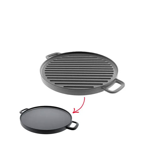 Questa racchiude due prodotti in uno: è infatti reversibile e può essere utilizzata dal lato liscio come piastra, o da quello grigliato come bistecchiera. Ha due comode impugnature per maneggiarla facilmente.