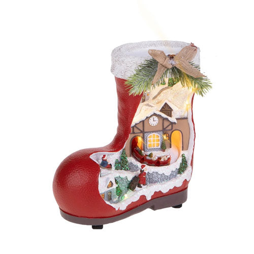 Il carillon, sempre piùscelto quale accessorio per le nostre case, un oggetto più che mai versatile ed affascinante: incanta i bambini e rallegra i più grandi, grazie alla sua innata capacità di sprigionare romantiche melodie arredando al contempo ogni living space! Il carillon scarpone by Brandani, composto di resistente resina, diffonde la sua soave musica natalizia ed accende i suoi luminosi LE creando un'atmosfera da fiaba. Raffinato ed emozionante, perfetto anche come idea regalo: i "personaggi" del suo villaggio, si muovono! Dimensioni CM: 20X10X23H