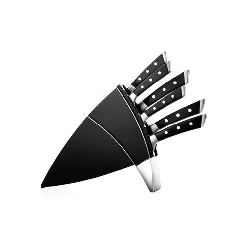 Un ceppo dal look esclusivo e moderno, bellissimo da tenere sul piano di lavoro, non solo per avere tutti i coltelli a portata di mano, ma anche come vero e proprio oggetto di design. E poi contiene i coltelli Azza, forgiati in un unico pezzo, robusti e precisi, perfetti per professionisti e gourmet.