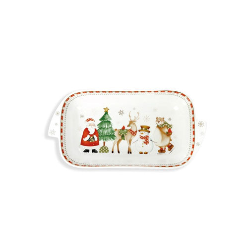 I protagonisti del Natale sfilano sulla tavola con buonumore e spensieratezza: tramandano una storia che sa di tradizione, su candide pagine di porcellana, tessile e melamina. La nuova collezione “Racconti” firmata Brandani accoglie le feste con armonia, eleganza e gioiosità! La pirofila in raffinata porcellana sfoggia i deliziosi personaggi tipici delle feste; renne, abeti, orsetti e l’immancabile Santa Claus renderanno unico ogni pasto. Dotata di pratici manici, la pirofila Racconti è ideale per cotture in forno, così come per servire le tue portate direttamente in tavola!Dimensioni CM: 29X14,5X5H