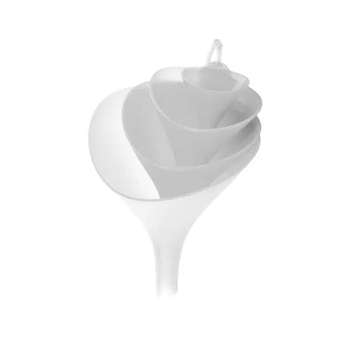 Puoi travasare piccole o grandi quantità di liquidi grazie a questo set di 4 imbuti di dimensioni differenti, provvisti anche di un filtro - adatto a tutte le misure - che lascia passare i liquidi bloccando i piccoli depositi. Sono prodotti in plastica di forma triangolare, così non rotolano lungo il piano di lavoro quando li appoggi, e li puoi riporre uno dentro l’altro quando non li usi, per risparmiare spazio. In più, hanno un anello che li tiene uniti quando li riponi.