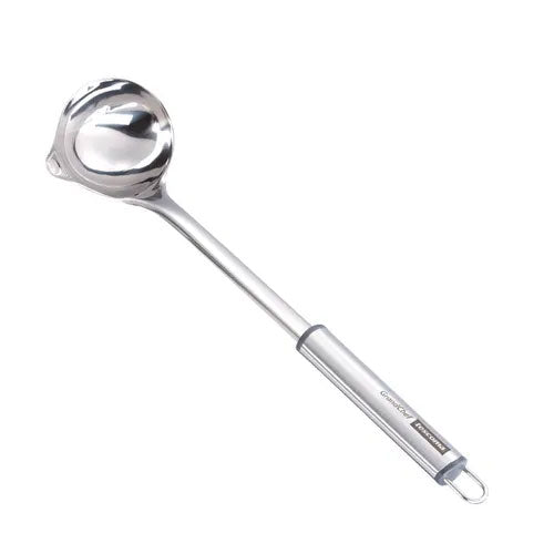Il mestolo per la salsa è prodotto in acciaio inox di alta qualità con eleganti rifiniture, ha un design esclusivo e curato in ogni dettaglio. Ideale per servire zuppe e liquidi senza correre il rischio di rovesciarli, ha un beccuccio laterale che facilita l'operazione di versare salse e minestre. L'utensile è provvisto di pratico gancio per essere facilmente appeso.