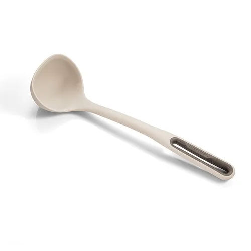 Mestolo da cucina in silicone resistente al calore fino a 220 °C, dal design moderno e “furbo”: gli angoli arrotondati ne facilitano l’uso nei recipienti di cottura e nelle ciotole, senza trascurarne gli angoli e il fondo. Adatto a tutti i tipi di pentole, anche a quelle con rivestimento antiaderente o in ceramica, perché è delicato sulle superfici e non le graffia. Con apertura longitudinale lungo l’impugnatura che lo rende comodo da usare e permette di appenderlo a un gancio della cucina.