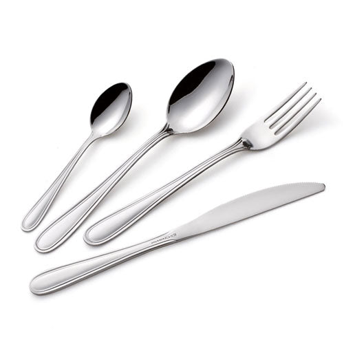City è una collezione di posate dalle linee semplici per apparecchiare quotidianamente una tavola informale e di buon gusto. Forme arrotondate e incisioni di decoro lungo il profilo dei manici della posata.